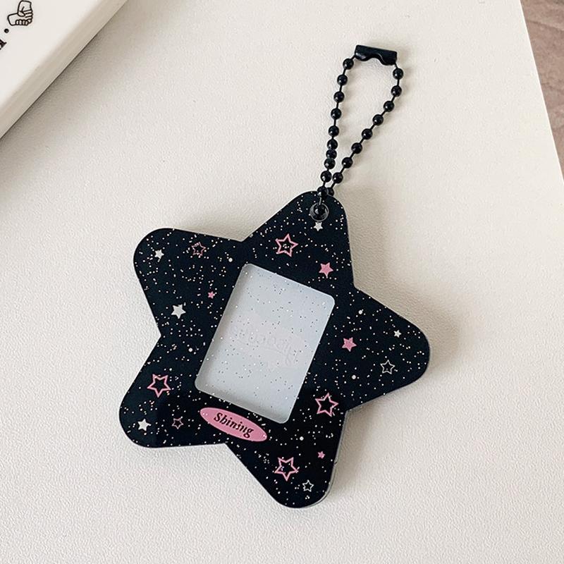 Hisocute Cartoon Pentagram 1 Inch Photo Frame Pendant Students Keychain Chasing Star Card Holder Pendant(Black Stars) (Hisocute)