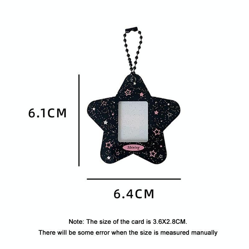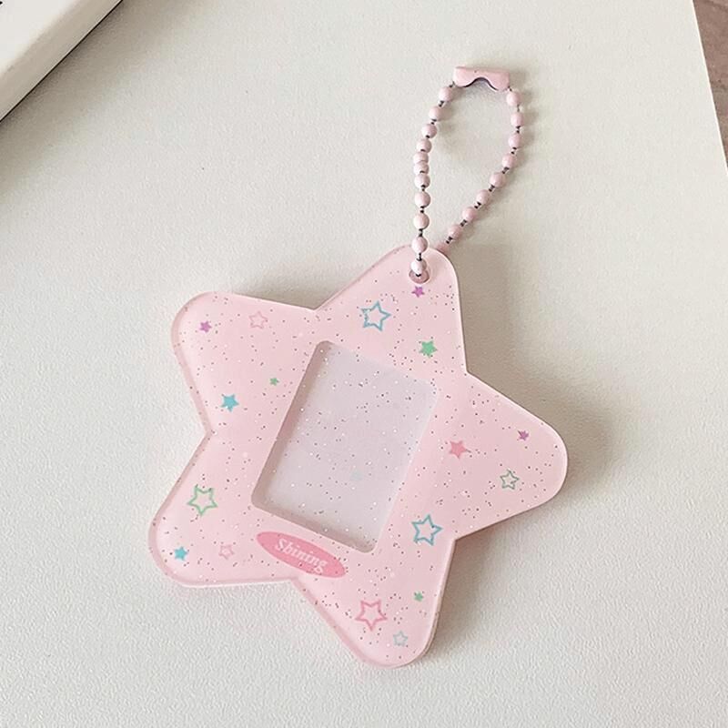 Hisocute Cartoon Pentagram 1 Inch Photo Frame Pendant Students Keychain Chasing Star Card Holder Pendant(Pink Stars) (Hisocute)