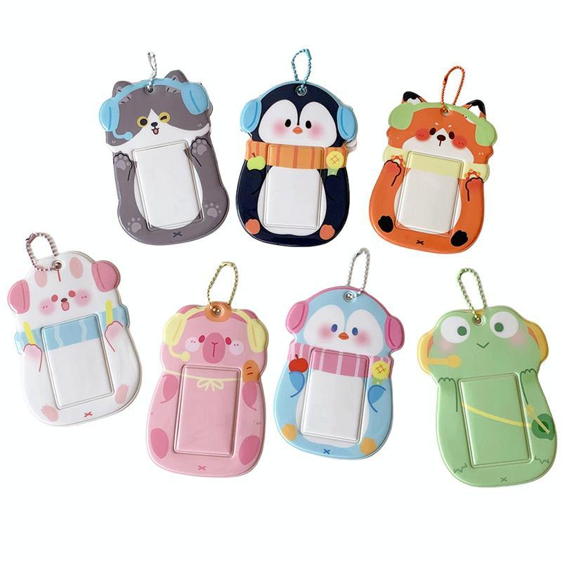 Hisocute Student Cartoon PVC Transparent Card Holder Cute Animal 3-Inch Idol Album Photo Card Case, Style: Orange Fox (Hisocute)