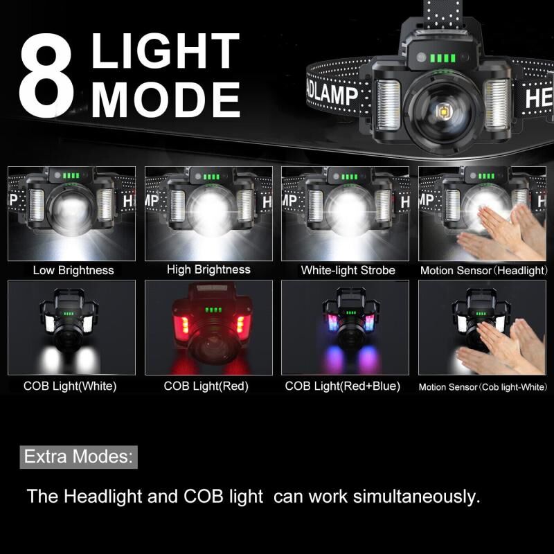Side light: white light - red light - red and blue flashing, long press to enter sensor mode