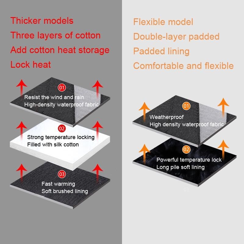 2. Παχύτερα μοντέλα με τριπλή στρώση βαμβακιού, γεμισμένα με μεταξένιο βαμβάκι, γρήγορη θέρμανση, απαλή βουρτσισμένη επένδυση