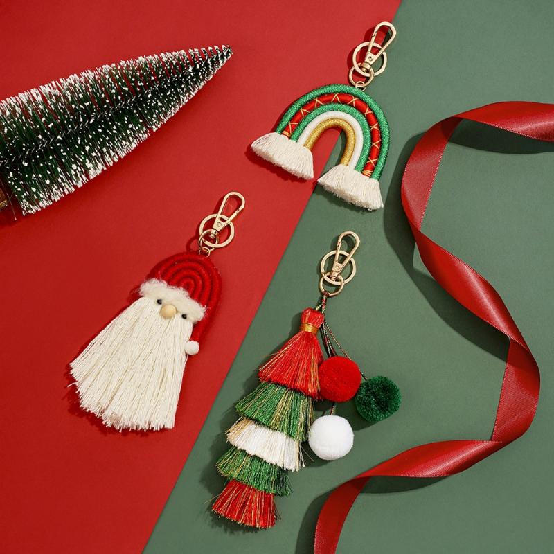 1. Classic Christmas color, cute Christmas tassel pendant, woven with cotton rope, hang it up to decorate your bag!
