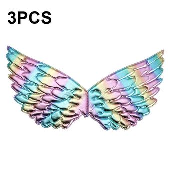 3 Τεμ. Παιδικές Φτερούγες για Φόρεμα Γκαλά, Ξωτικά, Πολύχρωμες Φτερούγες, Αξεσουάρ Κουστούμι για Πάρτι (Ανοιχτό Ουράνιο Τόξο)