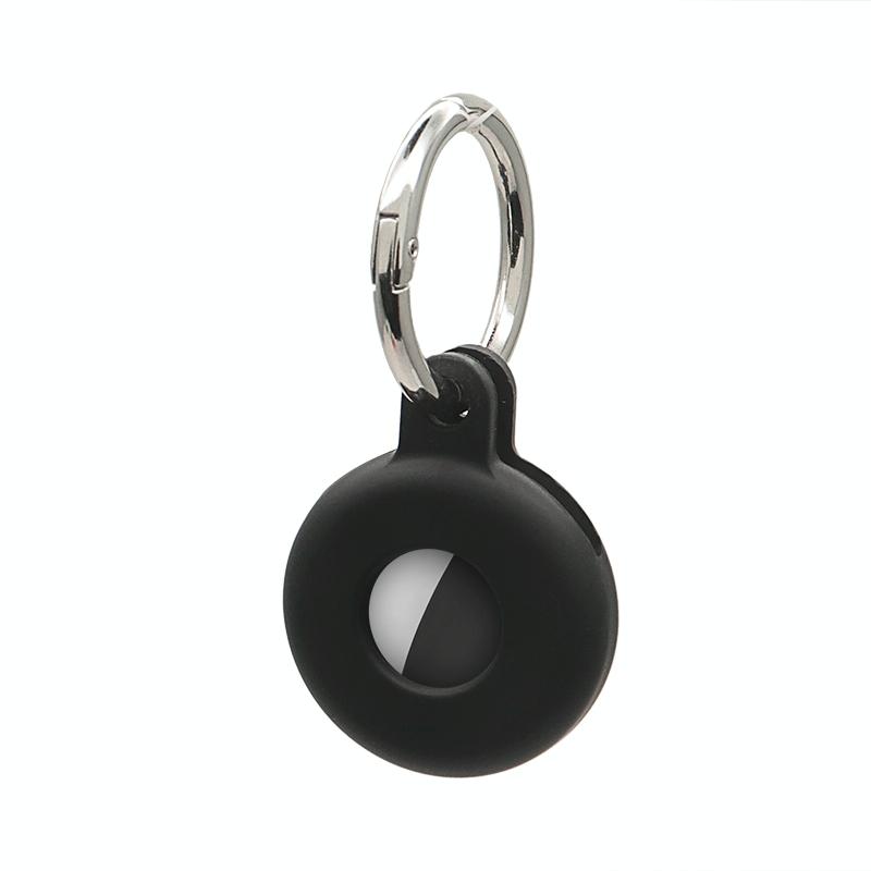 Hollow Anti-scratch Silicone Shockproof Protective Cover Case with Keychain Hook Loop For AirTag(Black)