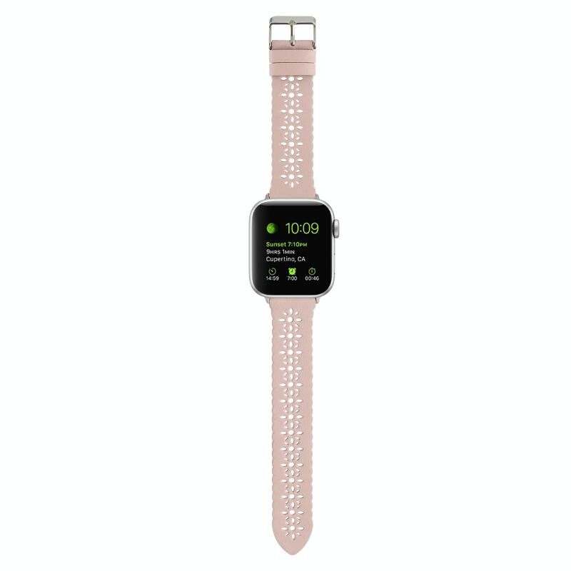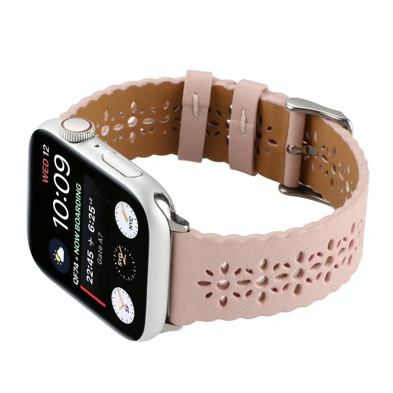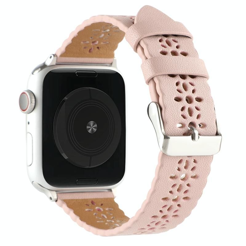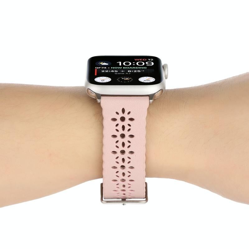 Hollow Genuine Leather Watch Band For Apple Watch Series 9&8&7 41mm / SE 3&SE 2&6&SE&5&4 40mm / 3&2&1 38mm(Pink)