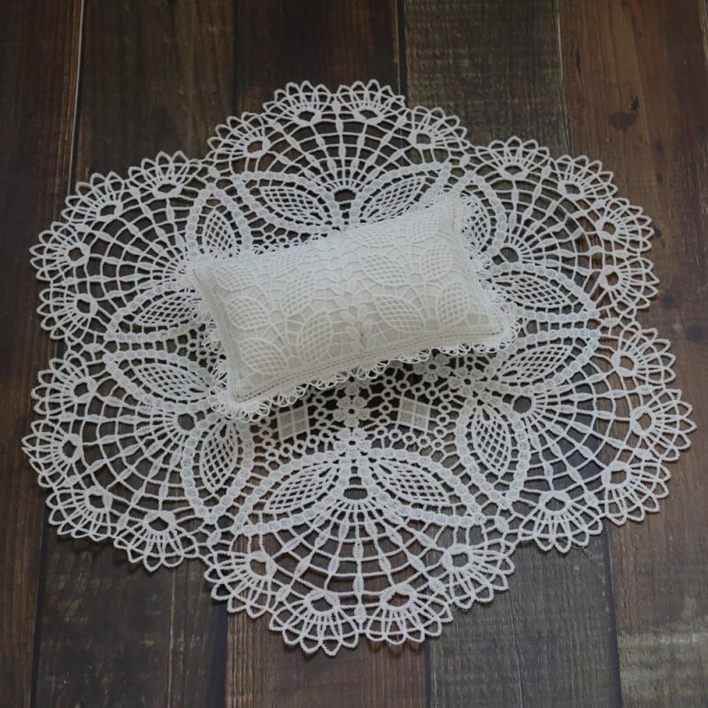 Κεντητή Δαντελένια Στρογγυλή Κουβέρτα + Σετ Μαξιλαριού, Σκηνικά Φωτογράφισης Βρεφών (Λευκό)