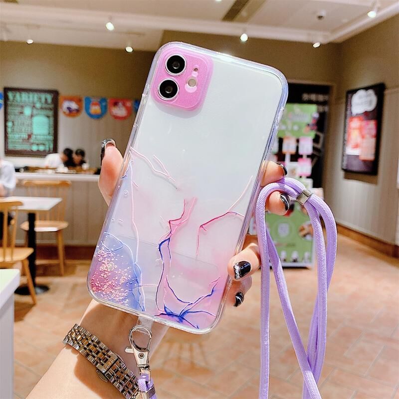 Θήκη προστασίας από TPU με κούφιο σχέδιο μαρμάρου και αντι-κραδασμική προστασία, με κορδόνι λαιμού για iPhone 6 (Μπλε)