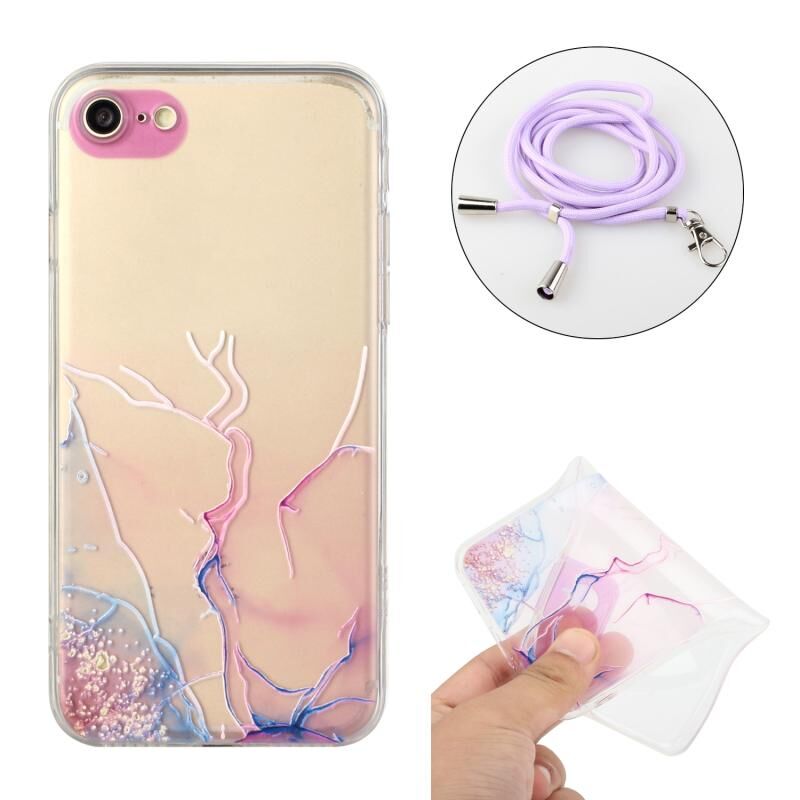 Θήκη προστασίας από TPU με κούφιο σχέδιο μαρμάρου και αντι-κραδασμική προστασία, με κορδόνι λαιμού για iPhone 6 Plus (Γκρι)