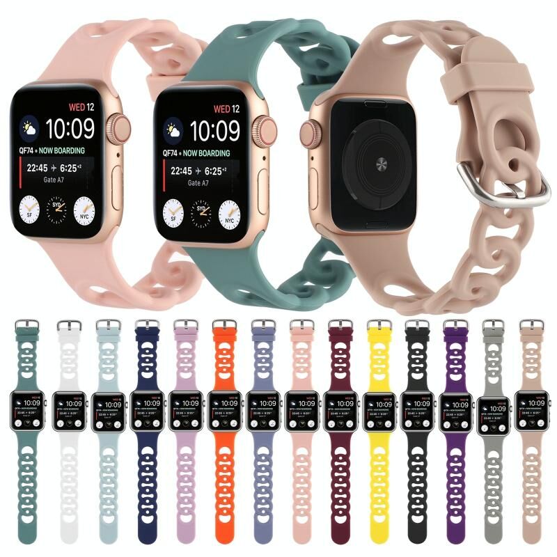 Hollow Out Silicone Watch Band For Apple Watch Series 9&8&7 41mm / SE 3&SE 2&6&SE&5&4 40mm / 3&2&1 38mm(11)