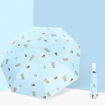 Children Sweet Vinyl Sunscreen Umbrella Tri-fold Student Cartoon Folding Umbrella, Style:Automatic(Sky Blue)