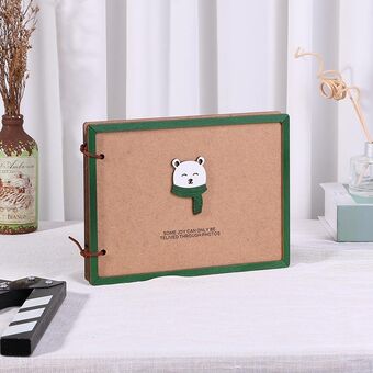 Wooden Loose-Leaf Album Children Growth Painting Album Couple DIY Handmade Gifts(Small Brown Bear)