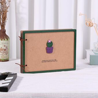 Wooden Loose-Leaf Album Children Growth Painting Album Couple DIY Handmade Gifts(Cactus)