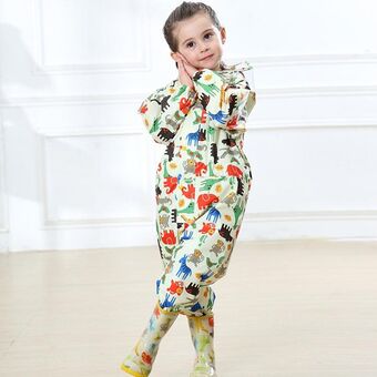 Siamese Children Raincoat Print Thin Section Hooded Raincoat, Size: L(Yellow)