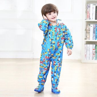 Siamese Children Raincoat Print Thin Section Hooded Raincoat, Size: M(Blue)