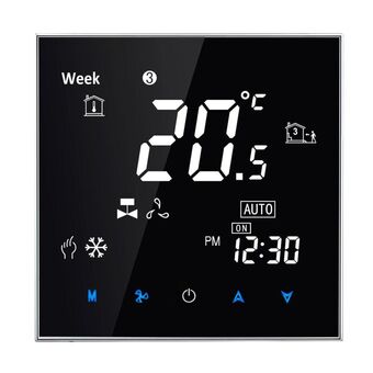 BAC-2000 Central Air Conditioning Type Touch LCD Digital 2-pipe Fan Coil Unit Room Thermostat, Display Fan Speed / Clock / Temperature / Time / Week / Heat etc.(Black)