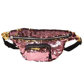Sequins Waist Bag Double Color Makeup Bag Mermaid Purses Chest Pack Women Girl Travelling Mobile Phone Bag(Rose Gold)