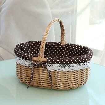 Καλάθι πικνίκ χειροποίητο από σάκο, ρατάν, για αποθήκευση, Προδιαγραφή: Μικρό (Κύριο χρώμα καφέ καρό)
