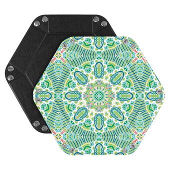 Εξαγωνικό Επιτραπέζιο Κουτί Αποθήκευσης PU, Δίσκος για Διάφορα, Μέγεθος: 7 ίντσες (Μαύρο)