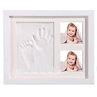 Solid Wood Three-frame BabyHands and Feet Mud Print Photo Frame with Cover(White Photo Frame White Mud)