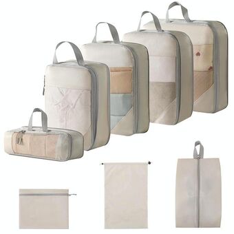 8 In 1 Mesh Compressed Travel Organizer Bag Luggage Clothes Shoes Toiletries Storage Bag(Beige)