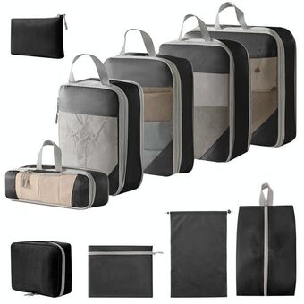 10 In 1 Mesh Compressed Travel Organizer Bag Luggage Clothes Shoes Toiletries Storage Bag(Black)