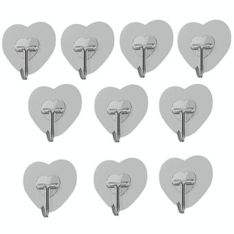 10pcs Transparent Self Adhesive Heart-shaped Hooks Door Wall Multi-Function Key Storage Hanger