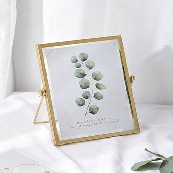 Μεταλλική κορνίζα φωτογραφίας με γυαλί, βάση για φυτικά δείγματα, Μέγεθος: 4 ίντσες (Χρυσή βάση)