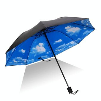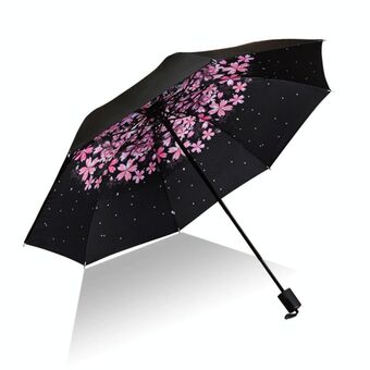 Ελαφριά Φορητή Τριπλά Διπλούμενη Ομπρέλα, Μαύρη Αδιάβροχη Αντι-UV, Μοτίβο Β