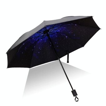 Ελαφριά Φορητή Τριπλά Διπλούμενη Ομπρέλα, Μαύρη Αδιάβροχη Αντι-UV, Σχέδιο Q