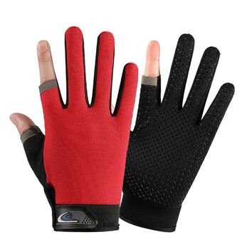 1 Ζεύγος γάντια ψαρέματος εξωτερικού χώρου QX0008 με αντηλιακή προστασία, αντιολισθητικά, με δύο δάχτυλα εκτεθειμένα, Μέγεθος: Ελεύθερο μέγεθος (Κόκκινο)