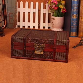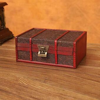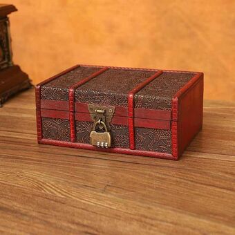 Κουτί αποθήκευσης κοσμημάτων από ξύλο σε ρετρό στυλ με κλειδαριά για επιφάνεια γραφείου, Μέγεθος: 23cmx16cmx9.5cm (Κινέζικο στυλ με κλειδαριά)