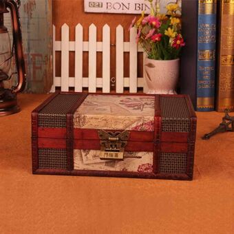 Κουτί αποθήκευσης κοσμημάτων από ξύλο με ρετρό φινίρισμα και κλειδαριά, για επιφάνεια εργασίας, Μέγεθος: 23cmx16cmx9.5cm (με σφραγίδα και κλειδαριά)