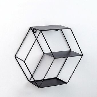 Hanging Wrought Iron Hexagonal Grid Wall Shelf Home Decoration(Black)