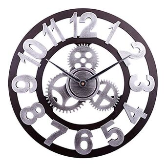 Retro Wooden Round Single-sided Gear Clock Arabic Number Wall Clock, Diameter: 35cm (Silver)