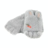 Children Half Finger Gloves Knitted Cold Warm Plus Velvet Fingerless Gloves(Light Gray)