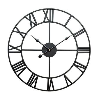 40cm Ρετρό καθιστικό σιδερένιο στρογγυλό ρωμαϊκό αριθμητικό σιωπηλό διακοσμητικό ρολόι τοίχου (μαύρο)