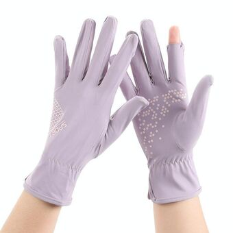 1 ζεύγος οδήγησης αντηλιακό αντι-υπεριώδες λεπτό καλοκαιρινό πάγο μεταξωτό δροσερό δάχτυλο μη ολισθηρό γάντια ιππασίας δωρεάν μέγεθος (Taro Purple)