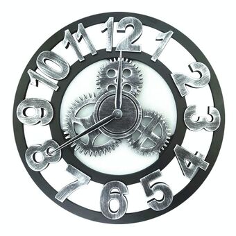 Ρετρό ξύλινο στρογγυλό μονόπλευρο ρολόι με γρανάζια, Διάμετρος: 40cm (Ασημί)