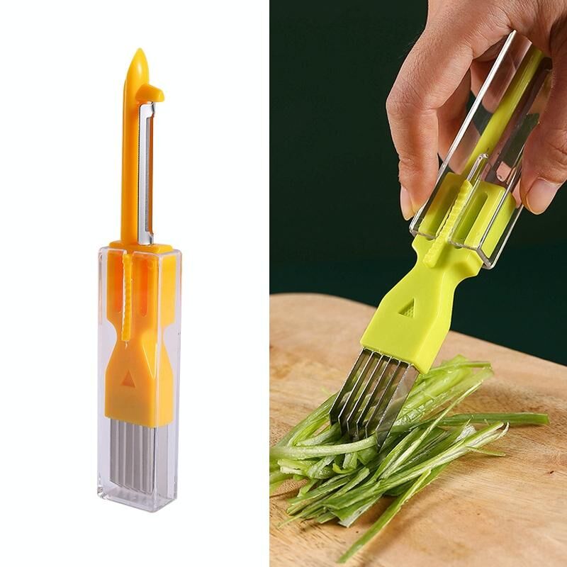 2. Μπορείτε να σκάψετε τις αυλακώσεις στην επιφάνεια των υλικών, να κόψετε ψιλοκομμένο πράσινο κρεμμύδι από τη μία πλευρά, να ξεφλουδίσετε τη φλούδα από την άλλη πλευρά και να κάνετε διπλή λειτουργία και στις δύο πλευρές