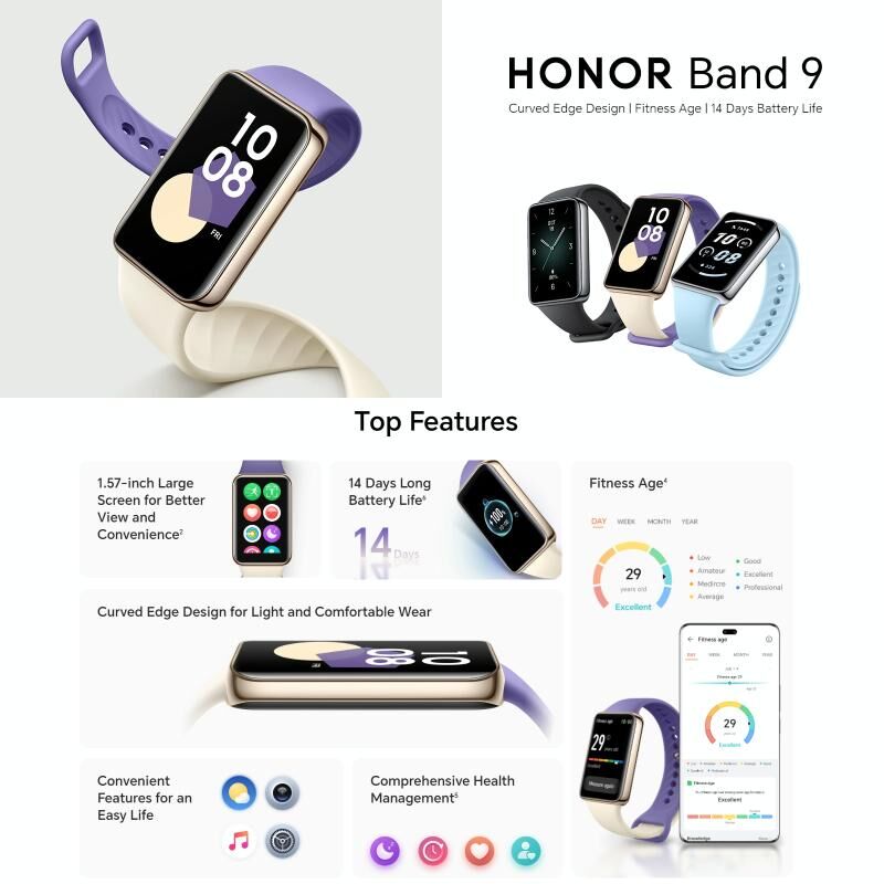 Honor Band 9, οθόνη AMOLED 1,57 ιντσών, υποστήριξη καρδιακού ρυθμού / οξυγόνου αίματος / παρακολούθησης ύπνου, τυπική έκδοση (μαύρο) (Huawei)