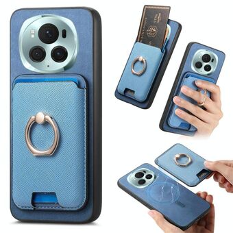 For Honor Magic6 Pro 5G Retro Cross Leather Ring Vertical Insert Card Bag MagSafe Phone Case(Blue)