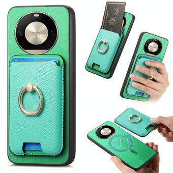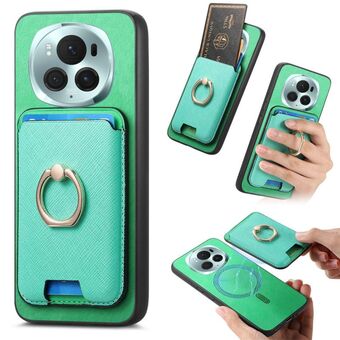 For Honor Magic6 Pro 5G Retro Cross Leather Ring Vertical Insert Card Bag MagSafe Phone Case(Green)