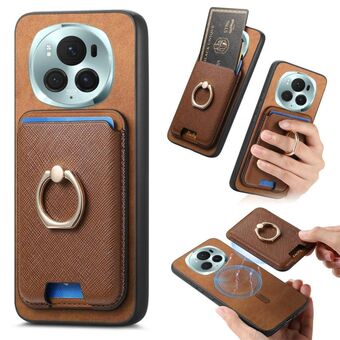 For Honor Magic6 Pro 5G Retro Cross Leather Ring Vertical Insert Card Bag MagSafe Phone Case(Brown)