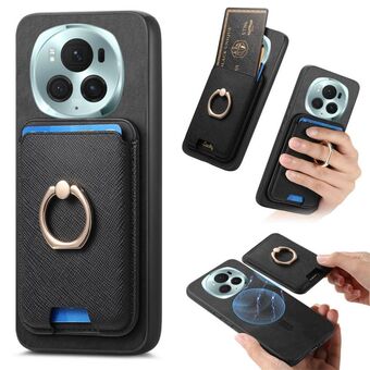 For Honor Magic6 Pro 5G Retro Cross Leather Ring Vertical Insert Card Bag MagSafe Phone Case(Black)