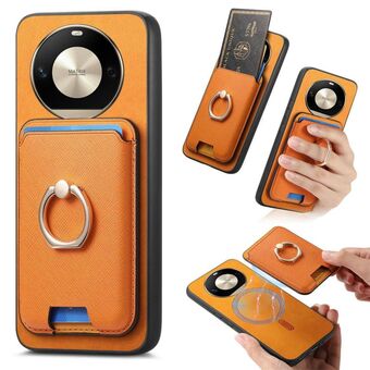 For Honor X50 Pro 5G Retro Cross Leather Ring Vertical Insert Card Bag MagSafe Phone Case(Yellow)