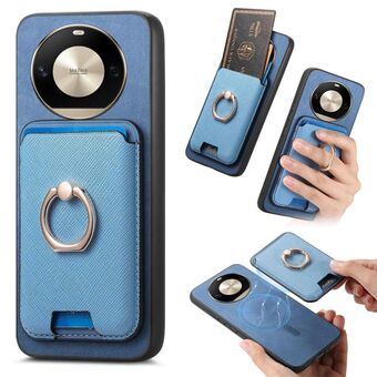 For Honor X50 Pro 5G Retro Cross Leather Ring Vertical Insert Card Bag MagSafe Phone Case(Blue)