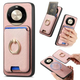 For Honor X50 Pro 5G Retro Cross Leather Ring Vertical Insert Card Bag MagSafe Phone Case(Pink)
