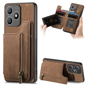 For Honor X40i Retro Leather Zipper Wallet Back Phone Case(Brown)