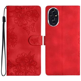 For Honor 200 Cherry Blossom Butterfly Skin Feel Embossed PU Phone Case(Red)