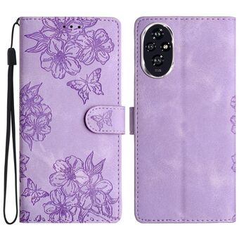 For Honor 200 Cherry Blossom Butterfly Skin Feel Embossed PU Phone Case(Purple)